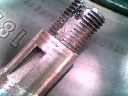 подтянули все гайки и забили зубилом выступающий буртик гайки в узкую канавку,